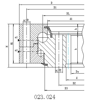 雙排球式回轉(zhuǎn)支承具有三個(gè)座圈,鋼球和隔離塊可直接排入上下滾道,根據(jù)受力狀況,安排了上下兩排直徑不同的鋼球。這種開式裝配非常方便,上下圓弧滾道的承載角都為90°,能承受很大的軸向力和傾翻力矩。當(dāng)徑向力大于0.1倍的軸向力時(shí)滾道須特殊設(shè)計(jì)。雙排球式回轉(zhuǎn)支承的軸向、徑向尺寸都比較大,結(jié)構(gòu)緊固。特別適用于要求中等以上直徑的塔式起重機(jī),汽車起重機(jī)等裝卸機(jī)械上。