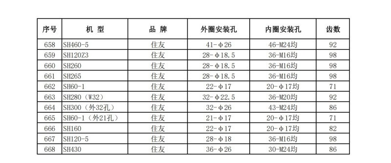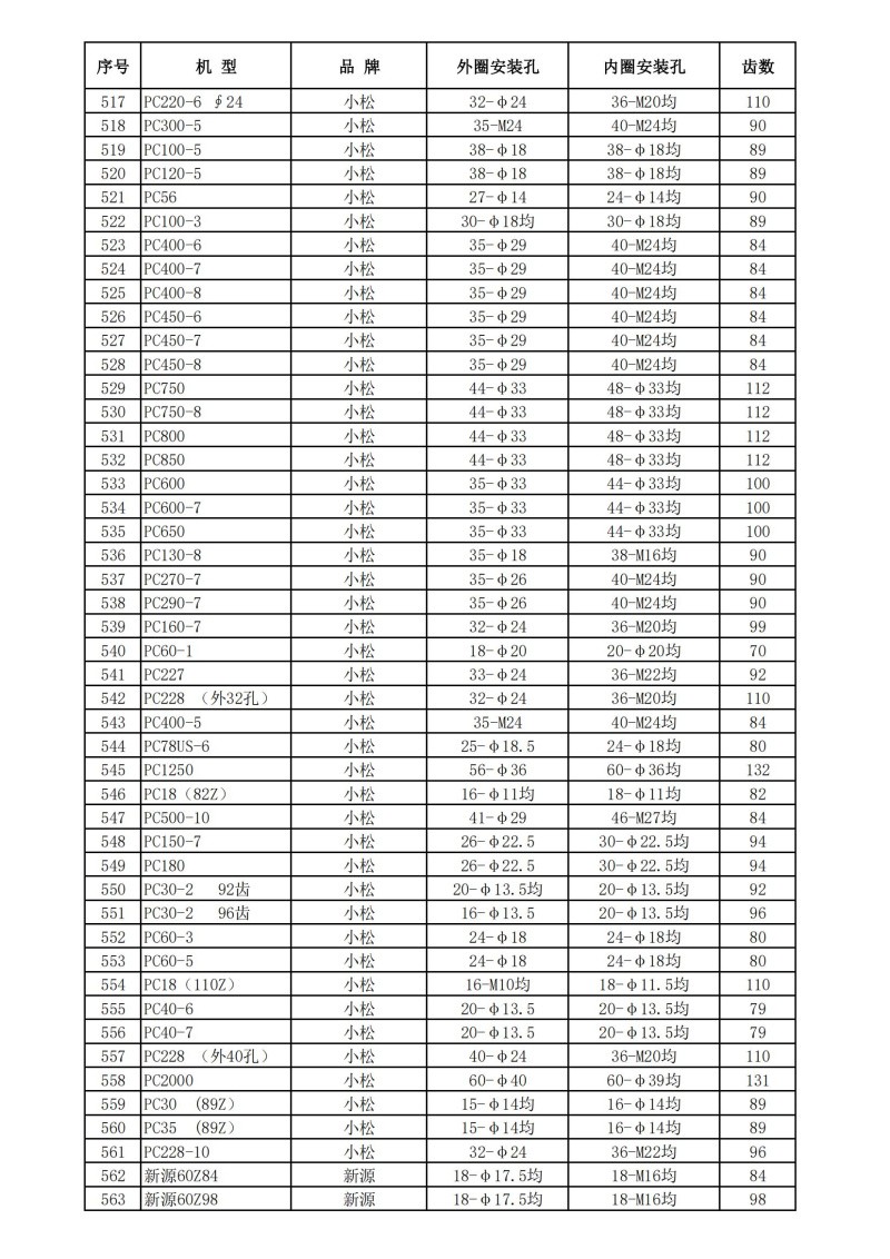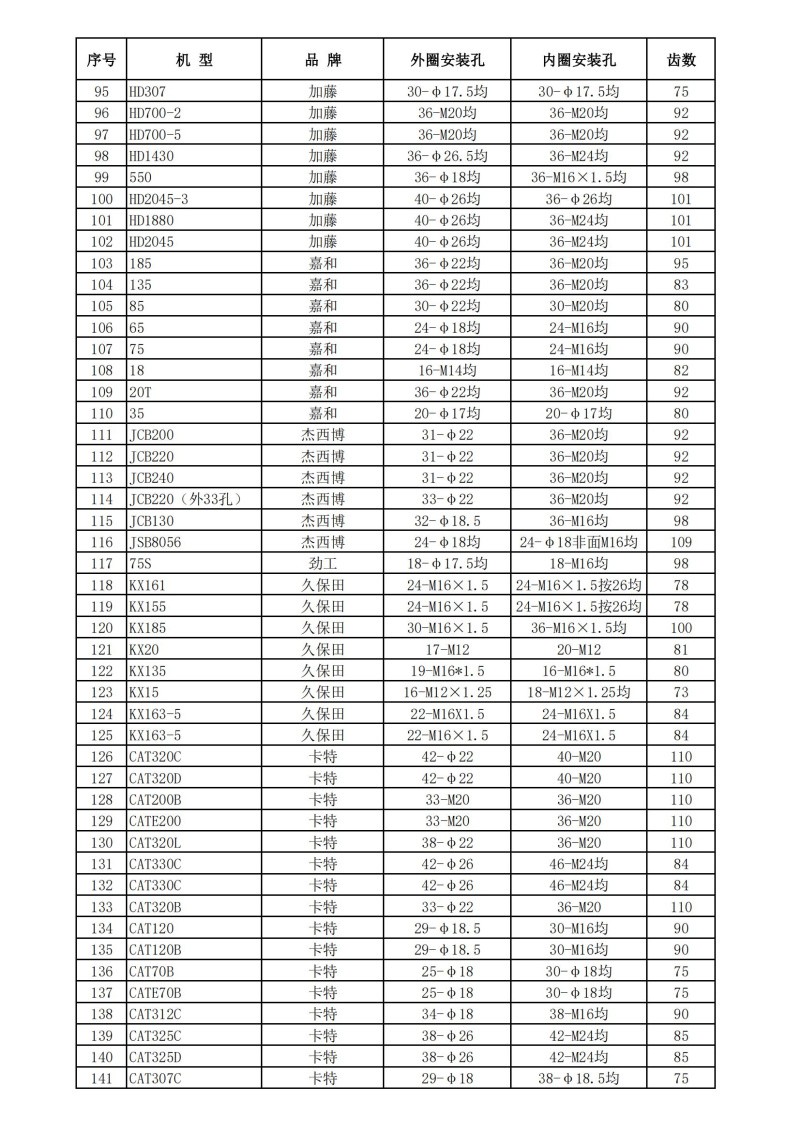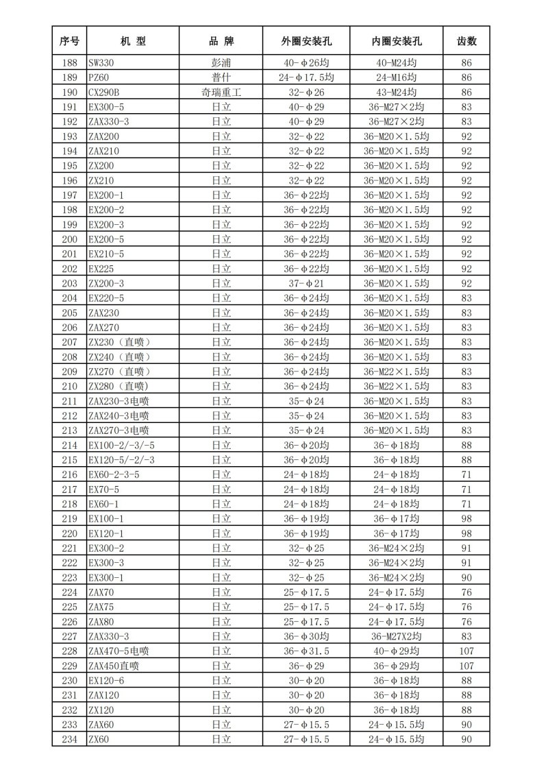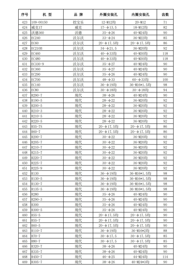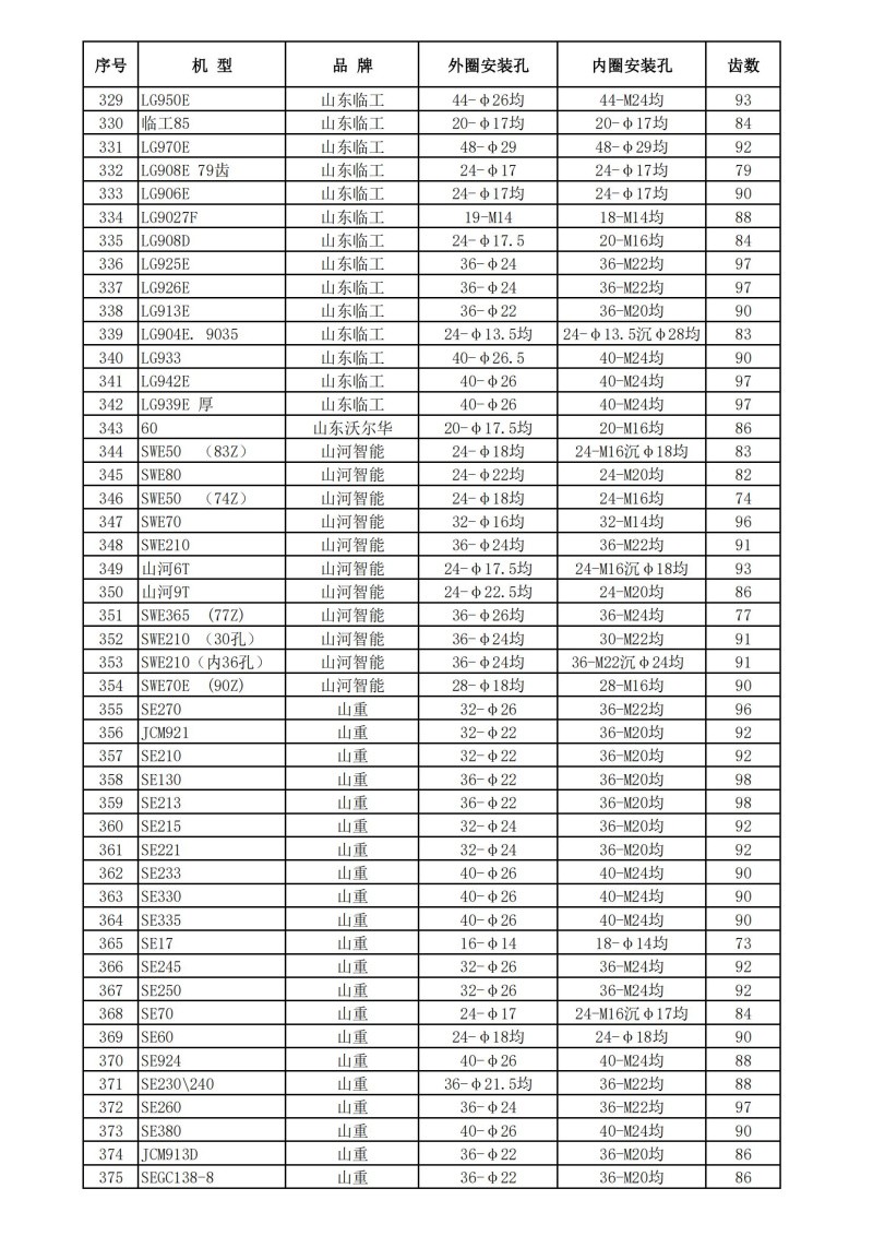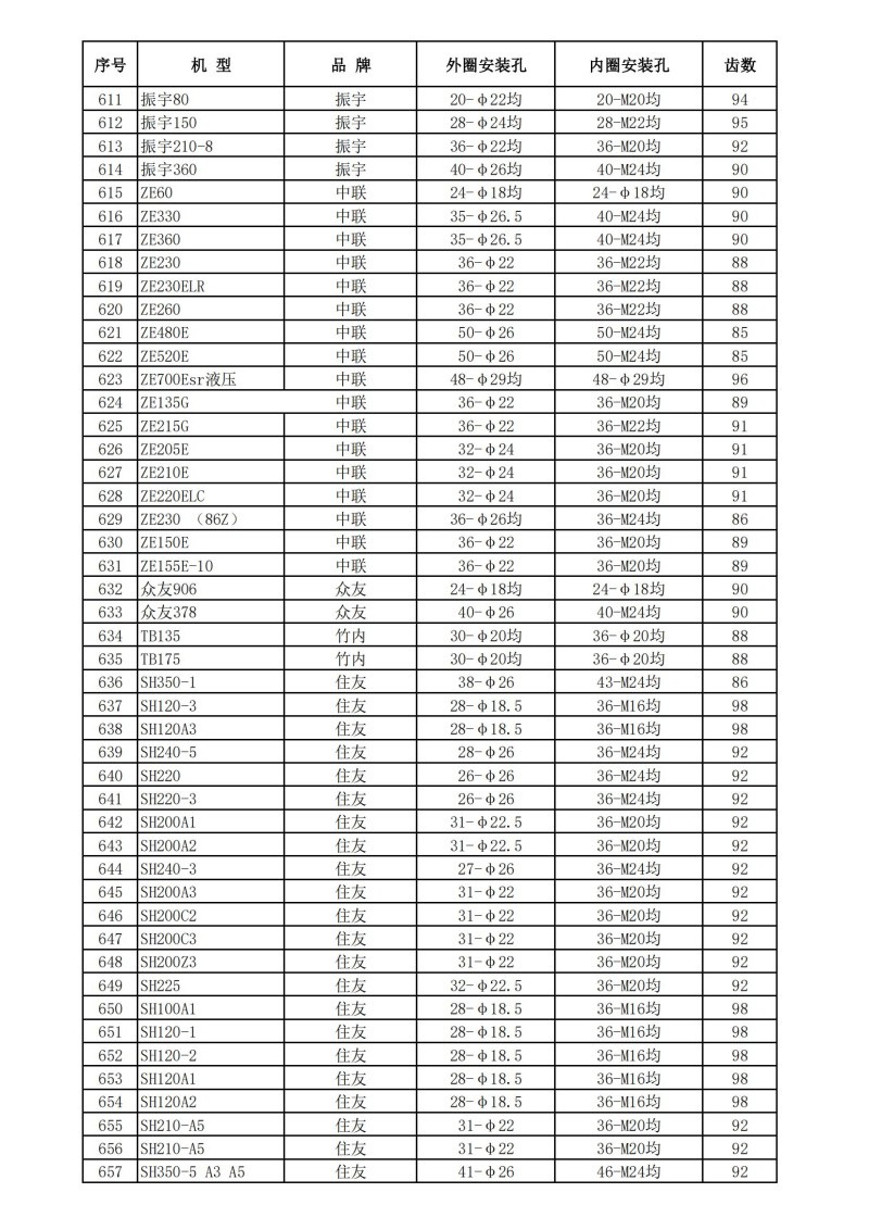 挖掘機回轉支承技術數據